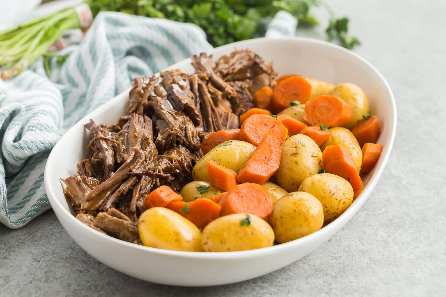 The name says it all—a pot roast with carrots and Creamer potatoes. What makes it perfect? It only needs 10 minutes of active prep time and then your Instant Pot does the rest (and it tastes amazing, too).