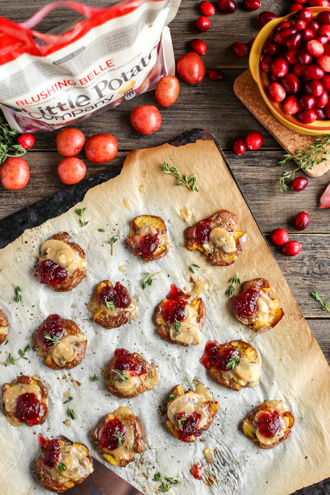 One of our most enduring favorite holiday recipes, these gorgeous smashed potatoes are served with a mushroom gravy topping and tangy cranberry sauce. They’re a little involved to make, but so worth it for the finished product.