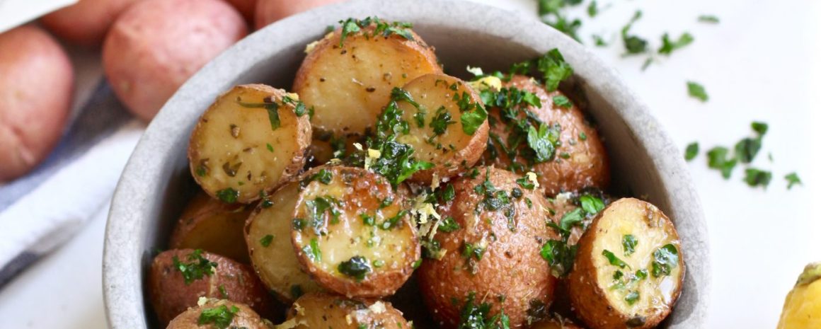 Ces pommes de terre à l’ail avec persil constituent l’accompagnement idéal, ou encore un plat qui s’apporte très bien à un repas communautaire. Les pommes de terre grelots Blushing Belle font en sorte que ce plat est riche en fibres et en potassium, tandis que le citron et le persil proposent des nutriments bons pour le foie.
