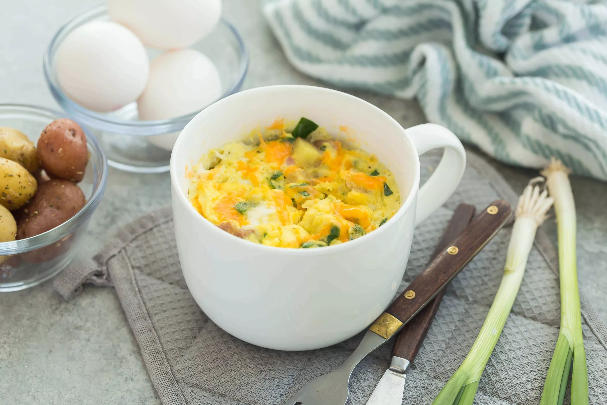 Microwave little potatoes per package instructions for five minutes.