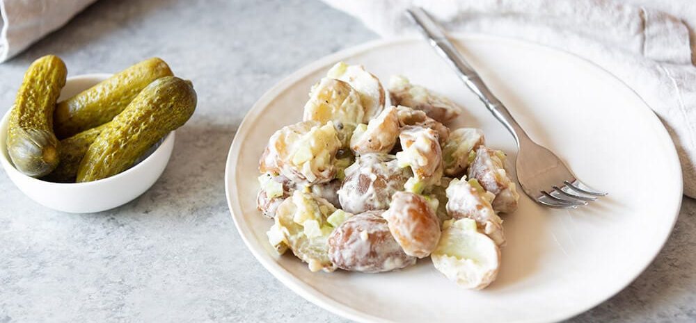 A fun twist on traditional potato salad! Tangy dill pickle potato salad that’s perfect for your next picnic, potluck, or cookout.