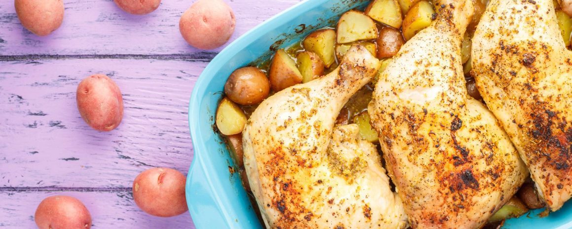 Pre-cooking the potatoes slightly ensures they will be cooked through when the chicken is complete. Other cuts of chicken are welcome, but cook-time will need to be adjusted.